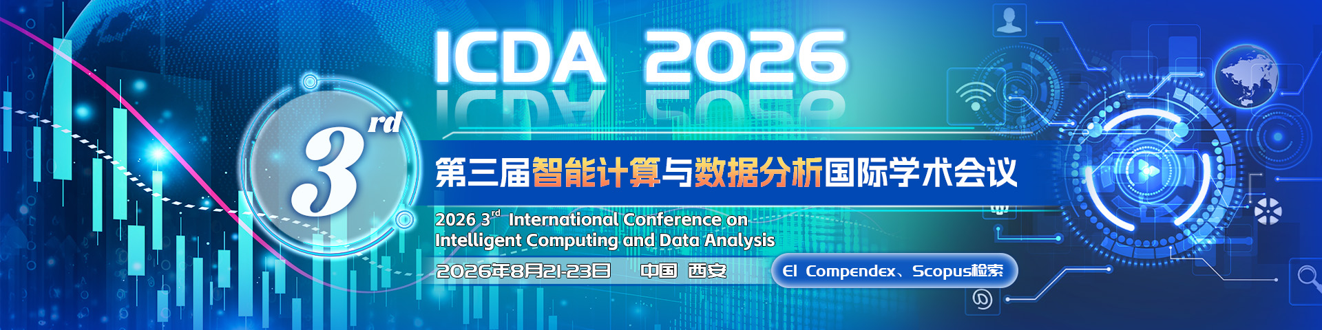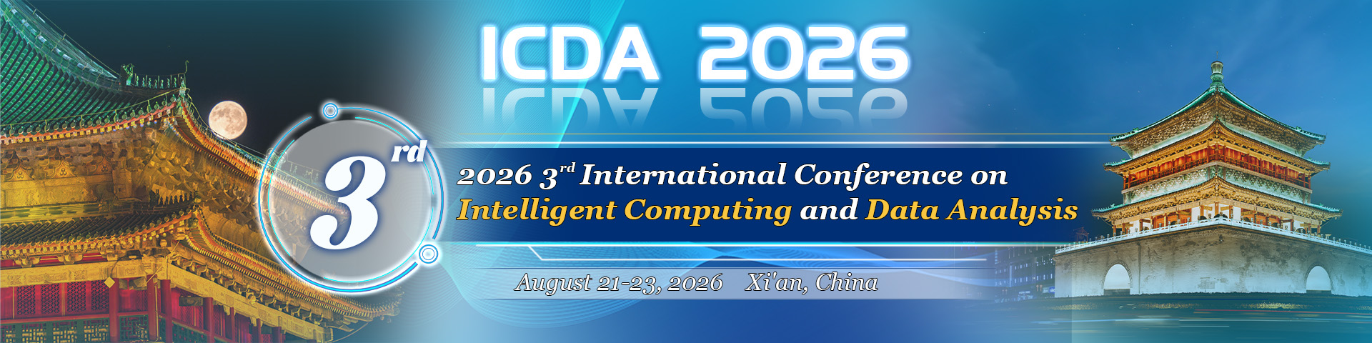 To explore key issues in the field of data science and computational intelligence, and to promote relevant exchanges, 2026 3rd International Conference on Intelligent Computing and Data Analysis (ICDA 2026) will be held in Xi'an, China, from August 21 to 23, 2026. This conference intends to invite top experts, scholars, and outstanding talents from the industry in the fields of data analysis and computational intelligence to actively explore new approaches and methods in data science and computational intelligence, focusing on current technological developments, application exploration, and common scientific concerns. The aim is to provide beneficial decision-making support and a strong impetus for the sustainable development of research in this field.
