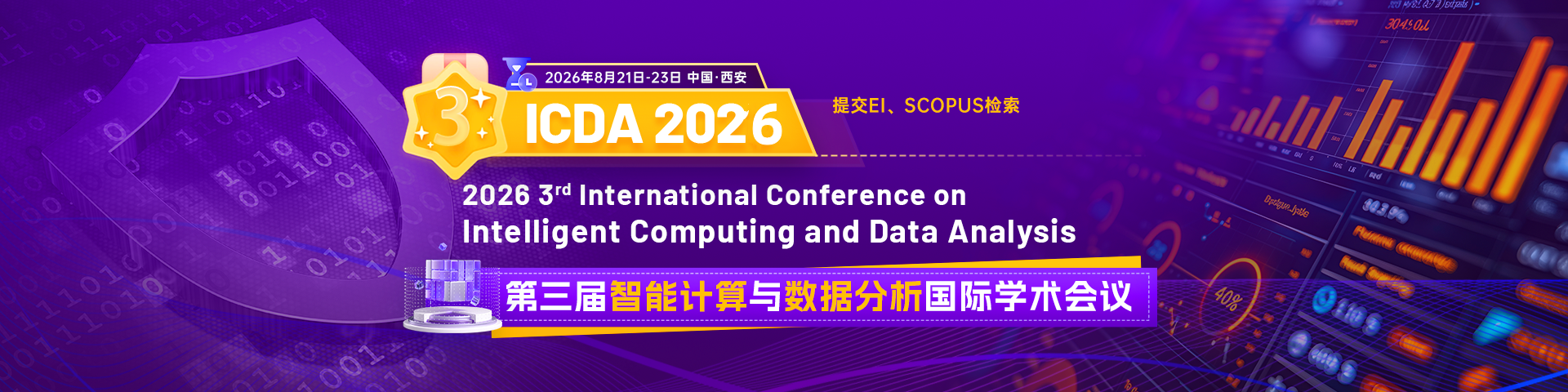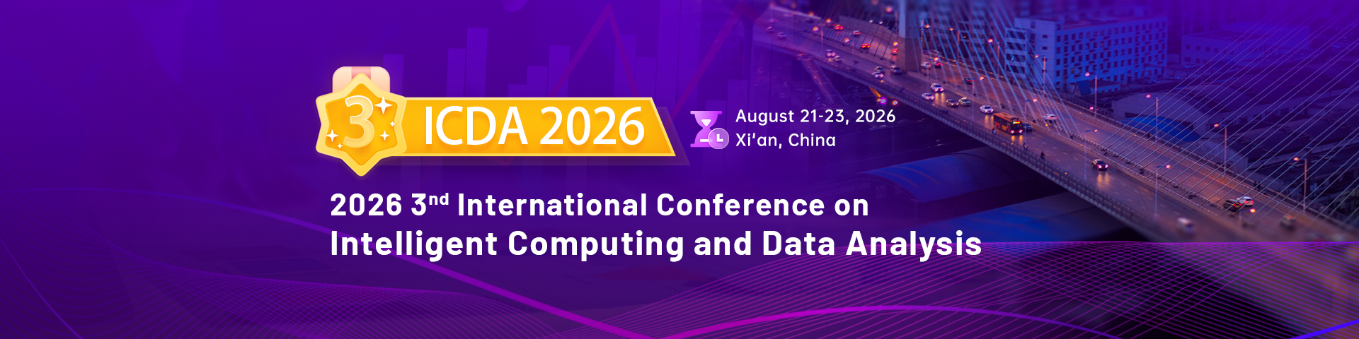 To explore key issues in the field of data science and computational intelligence, and to promote relevant exchanges, 2026 3rd International Conference on Intelligent Computing and Data Analysis (ICDA 2026) will be held in Xi'an, China, from August 21 to 23, 2026. This conference intends to invite top experts, scholars, and outstanding talents from the industry in the fields of data analysis and computational intelligence to actively explore new approaches and methods in data science and computational intelligence, focusing on current technological developments, application exploration, and common scientific concerns. The aim is to provide beneficial decision-making support and a strong impetus for the sustainable development of research in this field.